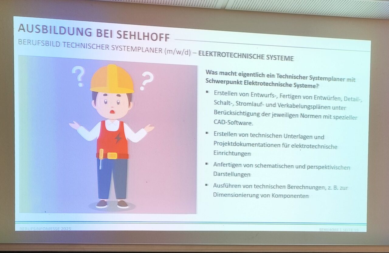 SEHLHOFF war ebenfalls vor Ort und stellte die unterschiedlichen Arbeitsbereiche sowie die Ausbildungsberufe im technischen und planerischen Umfeld vor. Dabei ergaben sich zahlreiche spannende Gespräche mit interessierten Schülerinnen und Schülern.